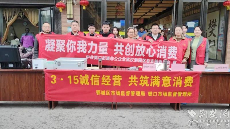 荊楚網(湖北日報網)訊(通訊員 王綽)3月14日上午9時,鄂城區樊口街道樊口菜市場人頭攢動,由鄂城區市場監督管理局樊口市場監督管理所、鄂城區司法局樊口司法所、中共樊口街道非公企業武漢港園區總支部委員會聯合開展的“3·15”消費者權益日普法宣傳活動在此拉開帷幕。