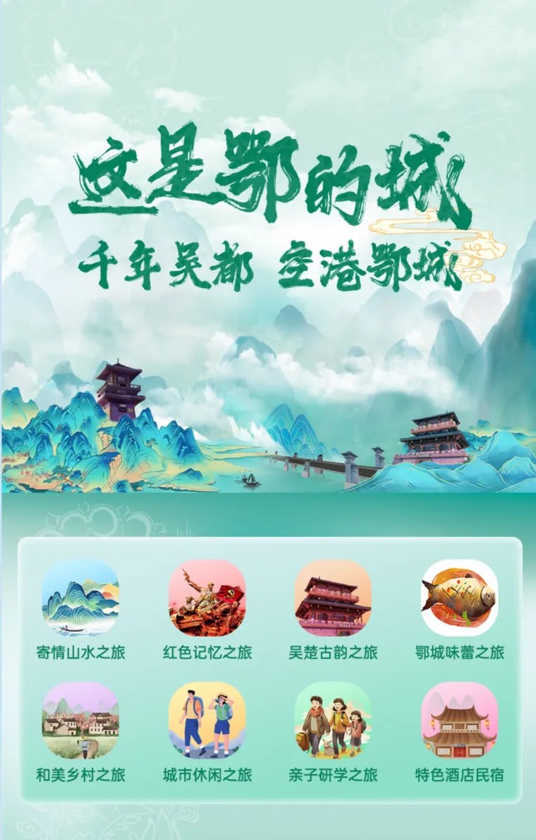 千年吳都,空港鄂城。不論您是想探索吳楚文化的悠久歷史,沉醉于秀麗鄂城的湖光山色,還是想和家人一起感受田園的自在,品嘗鄂城特色美食,或是想享受都市閑暇,漫步街頭巷尾,總有一條路線適合您,總有一款美食治愈您,總有一個港灣吸引您。