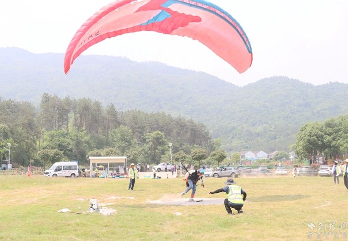 據(jù)了解,滑翔傘定點賽以其娛樂性、趣味性、安全性為大家所喜愛,運動員們從山頂起飛,通過專業(yè)的技巧操控,精準降落,踩中靶心為準。若想精確“中靶”,條件非常苛刻,飛翔在空中,天氣、風(fēng)速、操控力、運動員身體狀態(tài)全部都要剛好拿捏,這也決定滑翔傘定點賽具有很高的競技性和觀賞性。正因如此,開幕式現(xiàn)場吸引了近千名觀眾觀看。