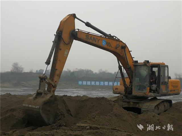 挖掘機(jī)在走馬湖心施工