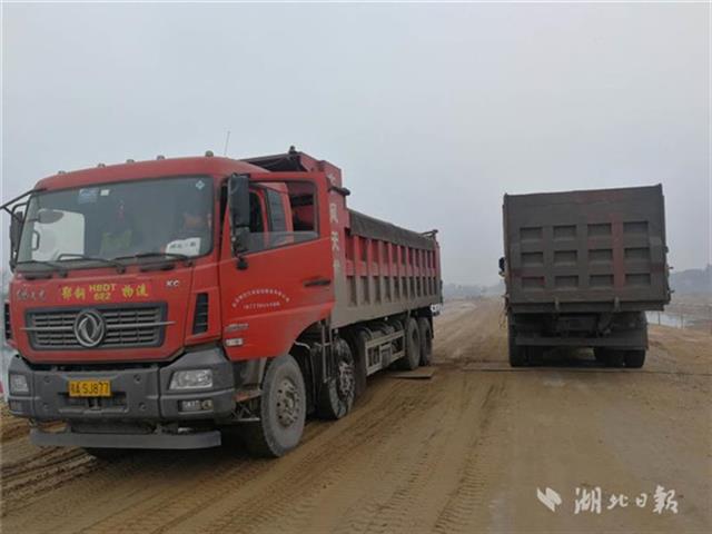 運(yùn)沙石料的貨車(chē)穿梭不停