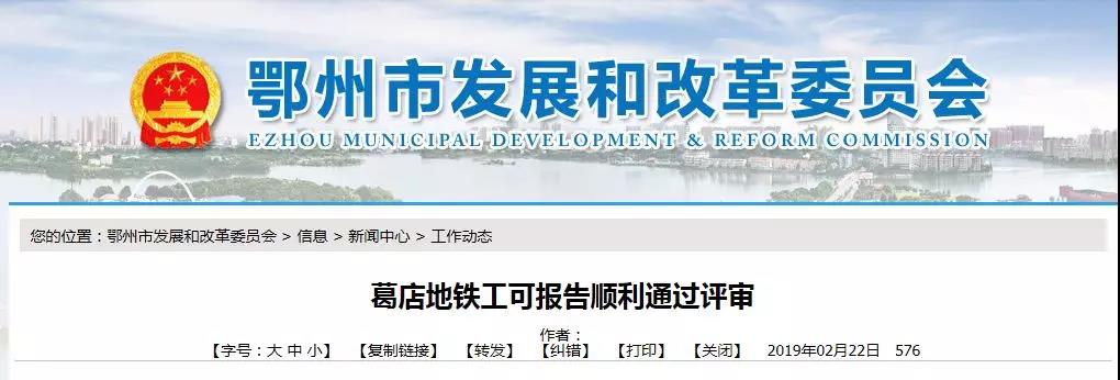 2月19-21日,省發改委委托中國國際工程咨詢有限公司在武漢召開葛店地鐵工程可行性研究報告評估會,并順利通過專家審查。這是葛店地鐵獲國家發改委正式批復(發改基礎[2018]1915號)后的又一重大進展。