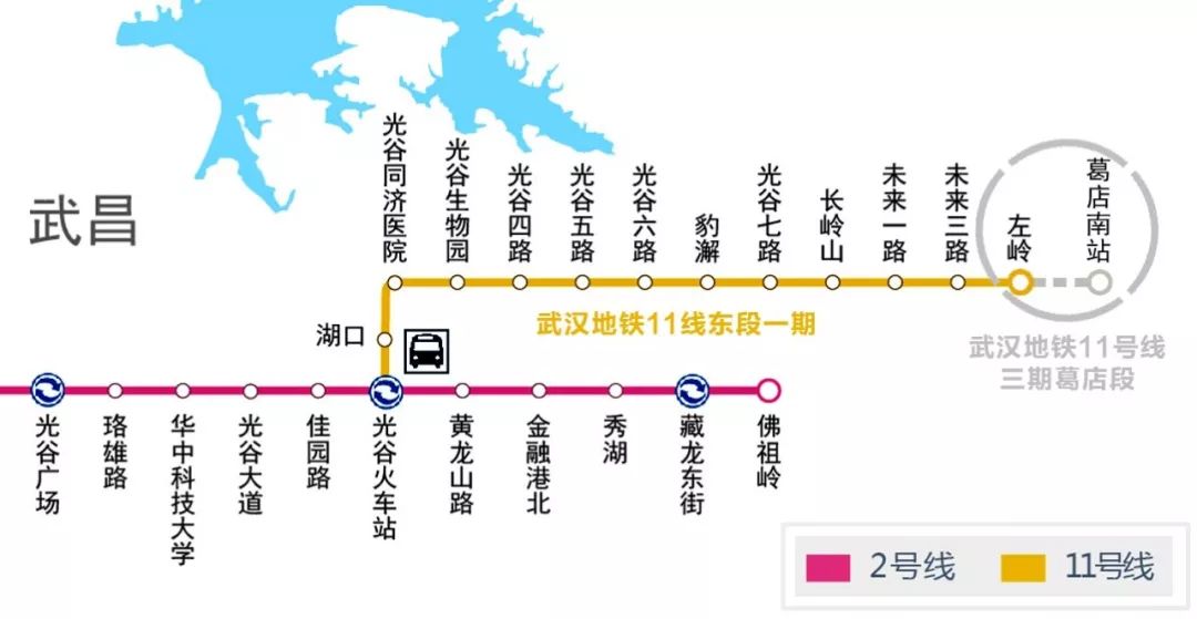 武漢地鐵11號線起于中法生態城,經新漢陽火車站、武昌火車站、光谷火車站、左嶺新城到葛店南站,全長66.8公里,是武漢軌道交通線網中重要的過江快速軌道骨干線路。其中,光谷火車站至左嶺段于2018年10月正式開通試運營。
