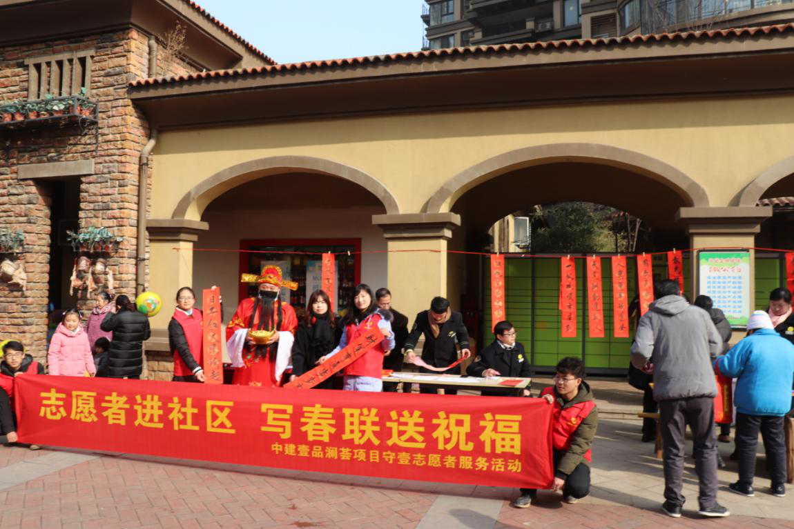 荊楚網消息(通訊員 周云 段松錦)1月13日臘八節當天,中建壹品瀾薈項目聯合銀湖社區、萬科物業開展臘八節“迎新春 送祝福”志愿者服務活動,為社區居民送春聯、送祝福。