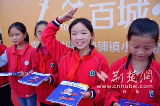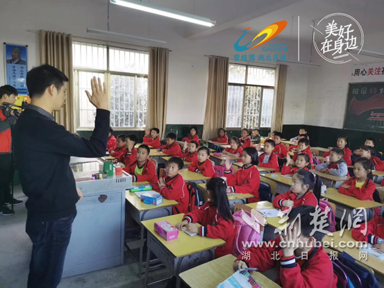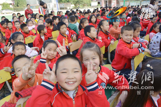 咸寧市通山縣黃沙鋪鎮小學學生捐贈儀式現場