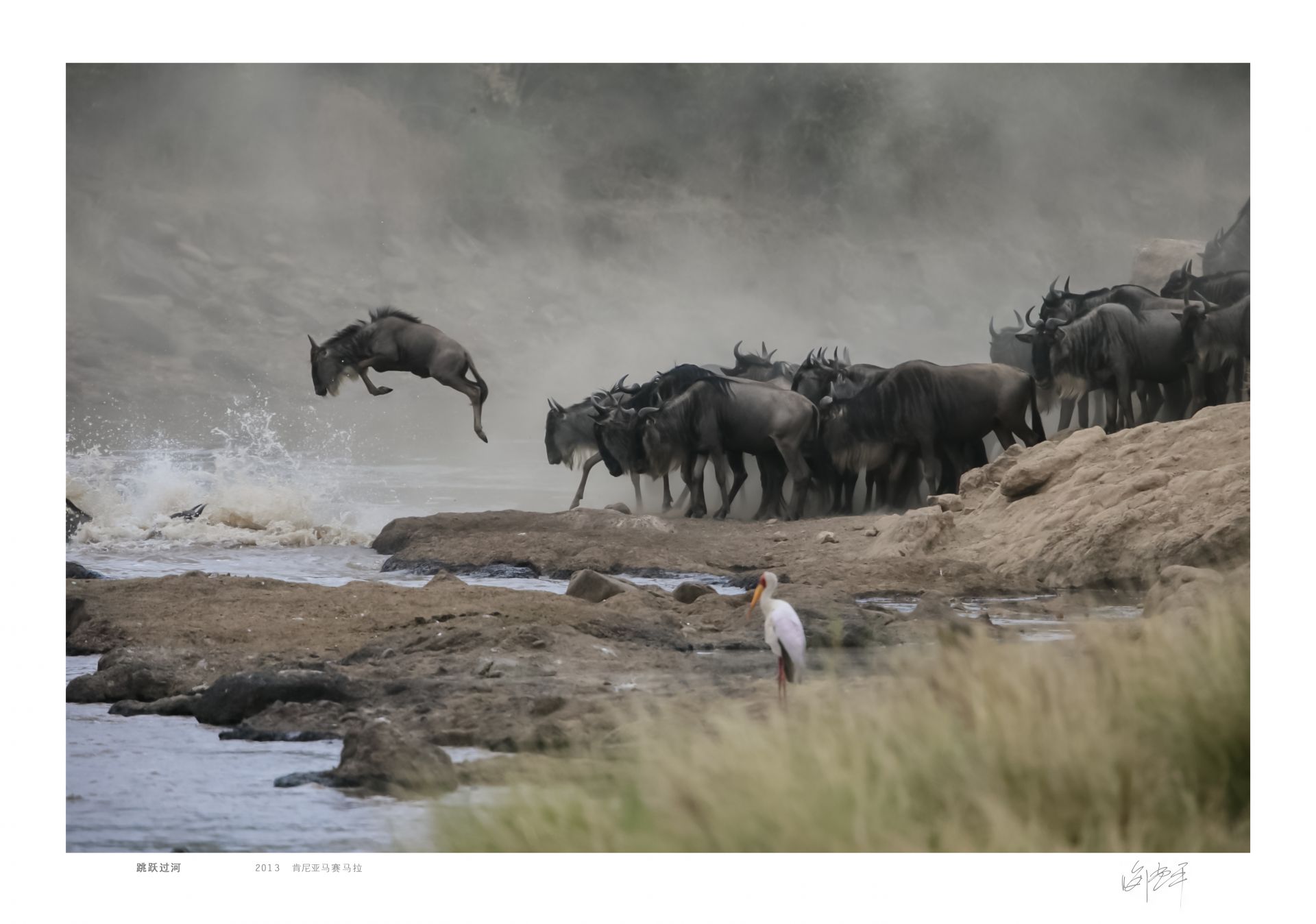一年一度的角馬遷徙。在湍急的河流上,飛躍橫渡。即使在非洲野生動物遷徙季,角馬過河依然是難得一遇的。