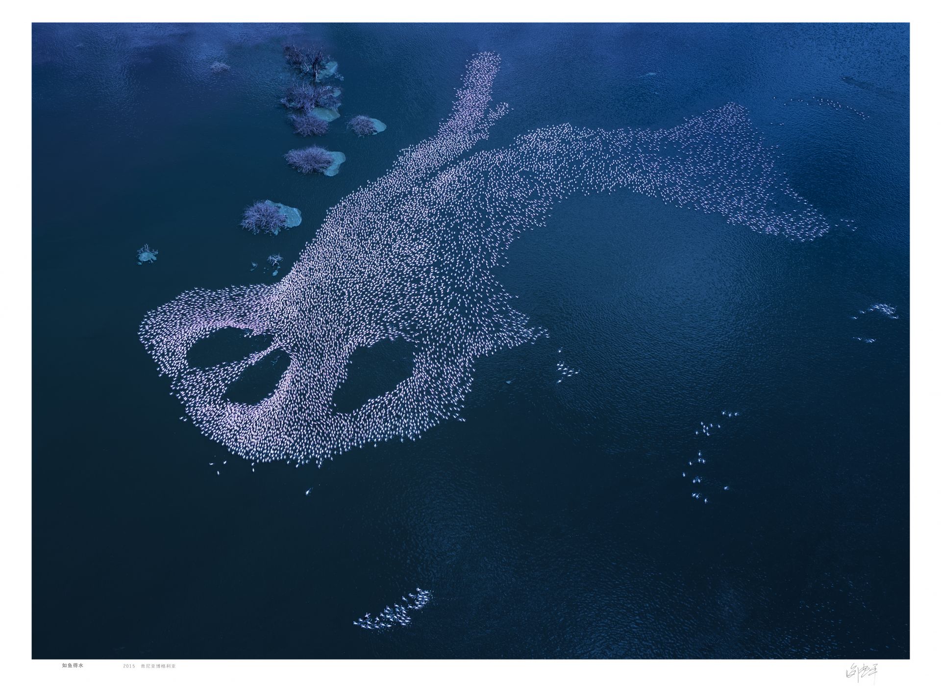 數以百萬計的火烈鳥棲息在博格利亞湖,他們隨地形聚集在一起,被我拍攝到這幅類似人類面具的畫面。面具:數以萬計的火烈鳥棲息在博格利亞湖,這里是他們家園,他們聚集在一起形成了類似面具的形狀,好像無意識中在抵制外來入侵破壞他們似天堂的家園。