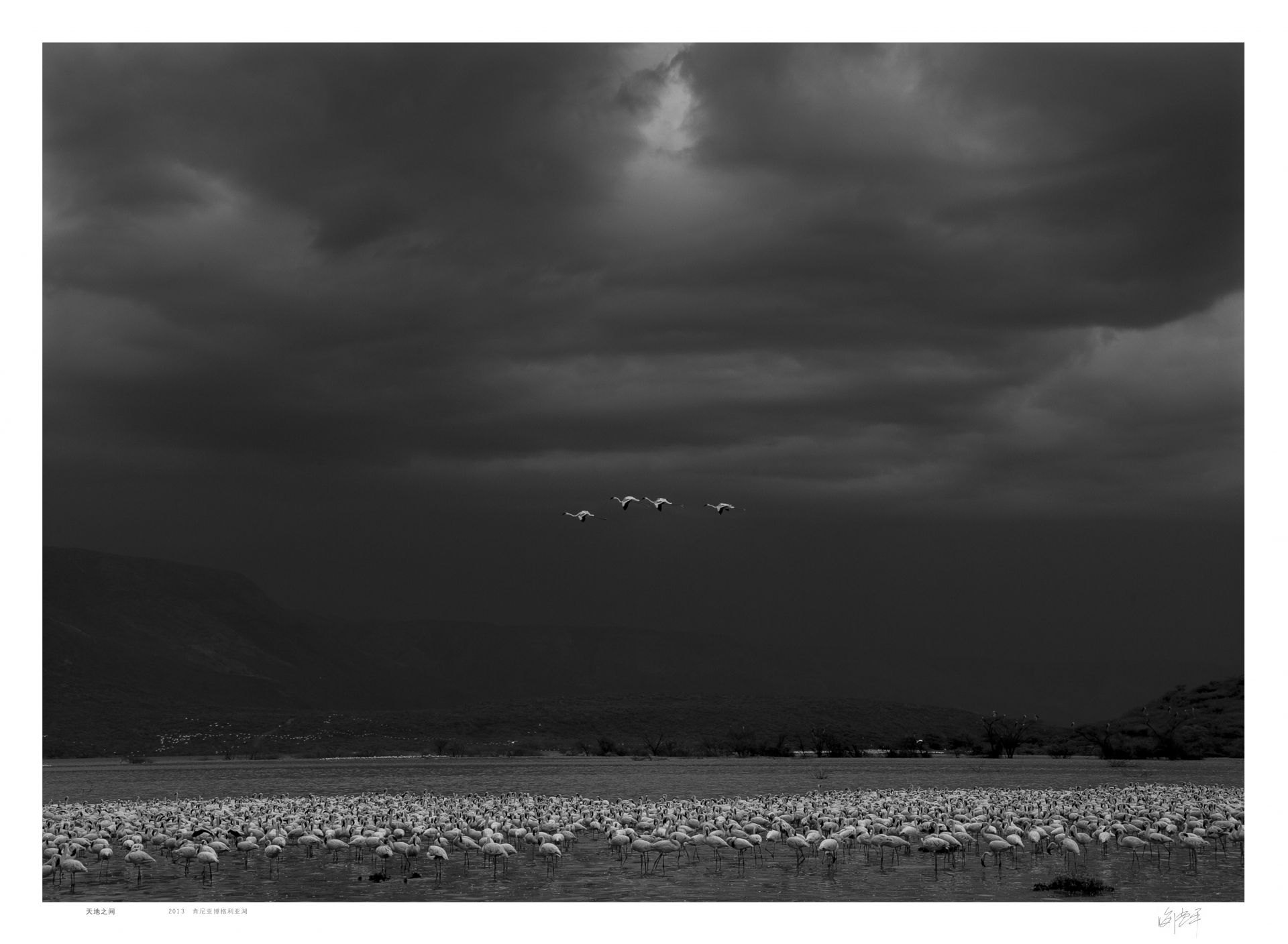 火烈鳥在博格利亞湖面上飛行, 我乘坐的直升機越過它們的時候,恍若一場夢境,彷佛我也變成了一只鳥遨游在漫天繁星中。