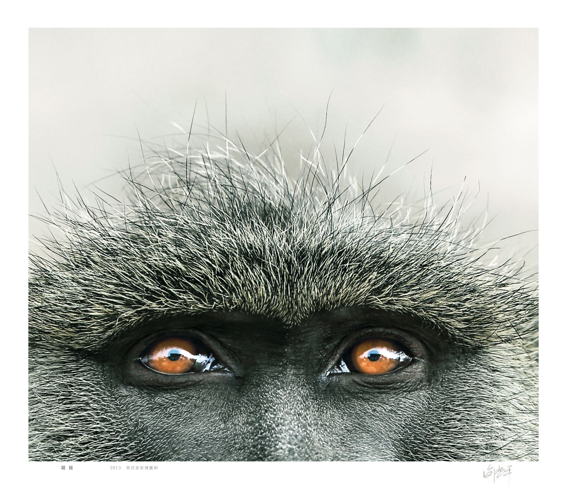 遠古時代的狒狒和人類有著同樣的祖先,當我的鏡頭與狒狒雙目對視并記錄下這一瞬間時,狒狒是否有著和人類一樣的思考。