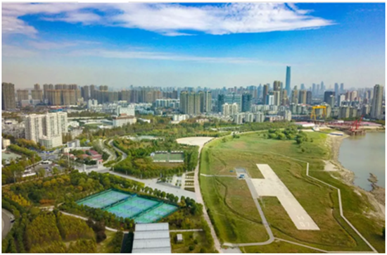 硚口江灘四期面積47萬平方米、長度3.3千米,硚口江灘四期完工。該段江灘在延續前三期江灘運動主題和全民健身理念的基礎上,新建了一塊標準足球場,打造了一處智能環保健身驛站,驛站內設置有8組健身器材可同時容納16人。
