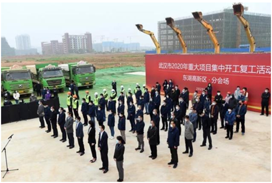 4月10日,武漢市在“解封”后,首次舉行重大項(xiàng)目集中開工復(fù)工活動(dòng)。在東湖高新區(qū)分會(huì)場(chǎng),14個(gè)項(xiàng)目集中開工,總投資額約138.9億元。