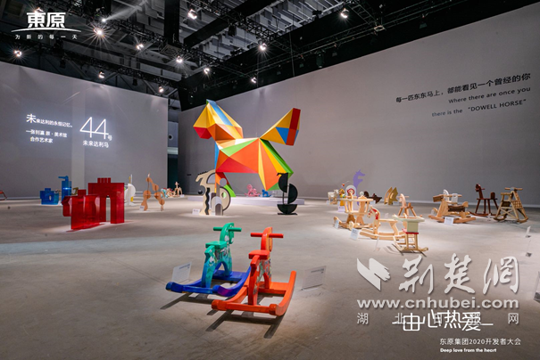 步入開(kāi)闊的序廳,一匹高達(dá)五米的東東馬現(xiàn)代藝術(shù)雕塑躍然于眼前。此次“由心熱愛(ài)——東原集團(tuán)東東馬主題藝術(shù)展”,由50匹東東馬展品組成。它們年代不同,材質(zhì)工藝各異,有的來(lái)自全國(guó)東原業(yè)主與熱心人士的捐贈(zèng),有的來(lái)自收藏家們的珍藏,有的來(lái)自藝術(shù)家的精心創(chuàng)作,共分為“出發(fā)·少年”、“善意·相逢”、“前路”三個(gè)篇章,首展杭州。來(lái)賓們紛紛與東東馬們合影,有的在現(xiàn)場(chǎng)工作人員的指引下騎上東東馬,重溫童年時(shí)代的快樂(lè)純真。