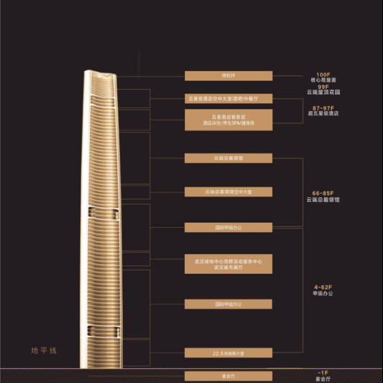 10年來,一座涵蓋國際甲級寫字樓、總裁私屬辦公、空中泳池、超五星級酒店、觀光層、停機坪等多重業態,各項功能定位均鎖定“世界級”的武漢綠地中心,已穿刺云霄,正成為世界五百強企業、國內龍頭企業、高端商業運營機構的聚集之“塔”。