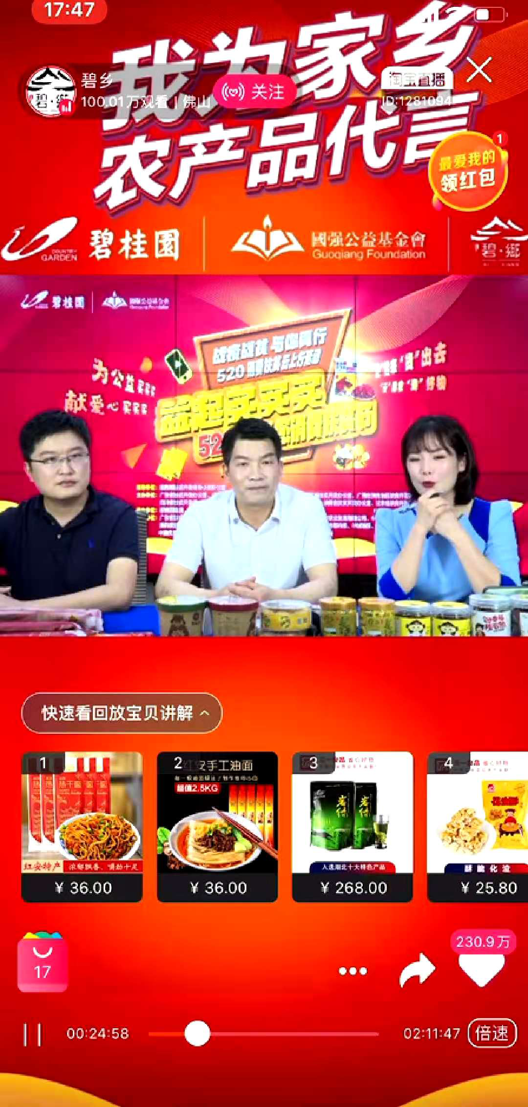 碧桂園參與承辦的“戰貧戰疫,與你同行”520消費扶貧云上行活動,湖北區域專場直播上,2個小時為湖北銷售扶貧產品2566件,銷售額達35.51萬元,直播間觀看人數超過100萬,點贊數達230.8萬。為了幫助湖北省各地級市州打造城市名片,碧桂園開展“鄂貨心連心——湖北消費扶貧月暨美食節”活動。共采購超10款湖北農產品,總計約200萬元。通過碧鄉平臺,為貧困地區農產品提供展示及銷售平臺;設立18家“鳳凰優選"超市門店,設置扶貧產品專柜,因地制宜創建銷售循環……碧桂園創新銷售形式,將需求轉換為訂單,實際解決農產品滯銷問題,以消費扶貧形式助力貧困地區農戶脫貧增收。