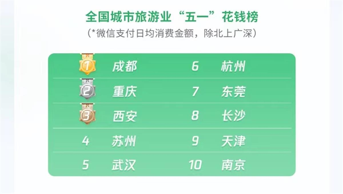 在另一份榜單中,武漢旅游行業(yè)消費(fèi)金額也排進(jìn)了全國(guó)前十。