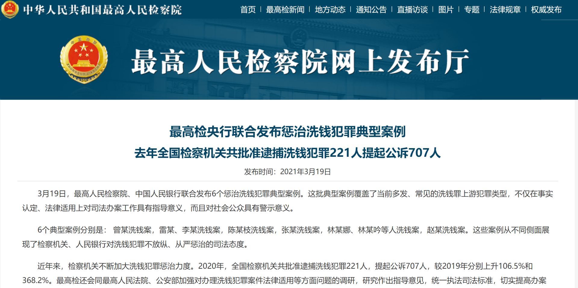 每經記者注意到,早在2021年3月19日,最高人民檢察院、中國人民銀行就聯合發布了6個懲治洗錢犯罪典型案例,覆蓋了當前多發、常見的洗錢罪上游犯罪類型,其中就包括通過房地產開發進行洗錢的案例。