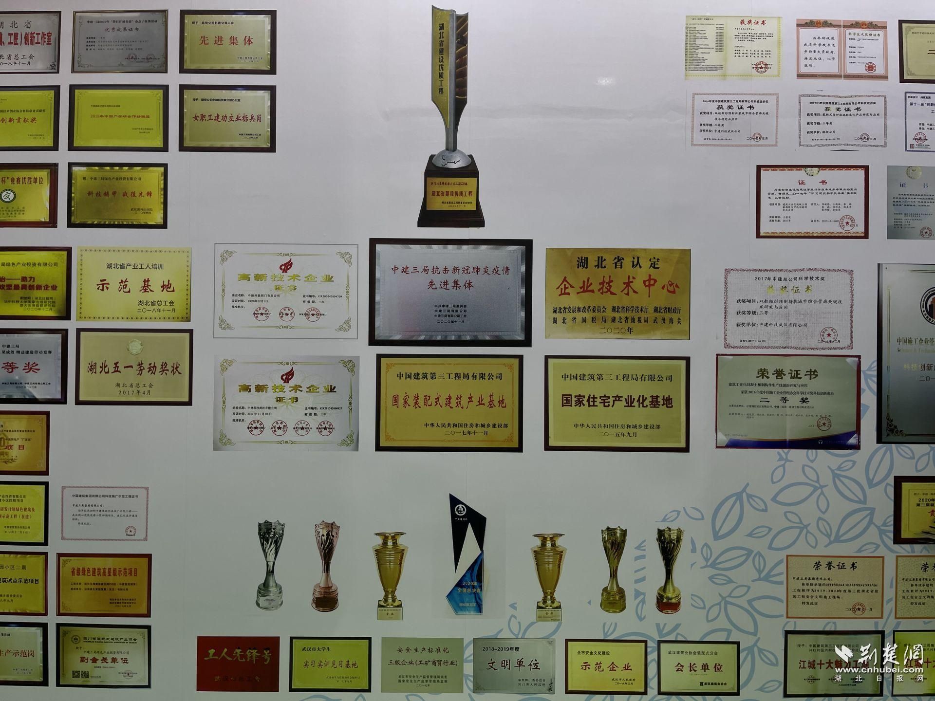 中建三局科創(chuàng)公司近年來(lái)獲得的獎(jiǎng)勵(lì)。記者王博璨攝
