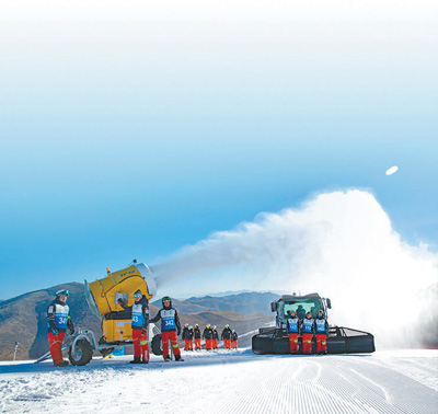 北控京奧滑雪戰(zhàn)隊正在制雪。延慶賽區(qū)國家高山滑雪場中心要在今年10月具備造雪條件。北控京奧滑雪戰(zhàn)隊選擇太舞雪場最陡的雪道作為試驗和訓(xùn)練基地,主要任務(wù)是記錄當(dāng)時的氣溫等物理參數(shù),制定一套適用于延慶賽區(qū)的雪道制作方法。