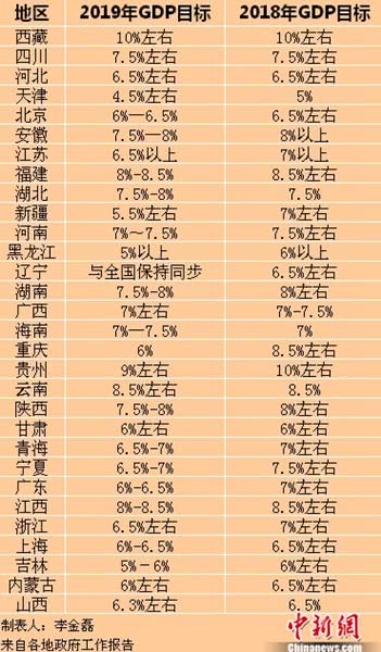 資料圖。中新社記者 張云 攝海南、湖北GDP目標逆勢上調不過,也有省份設定的2019年GDP目標與去年持平。如,西藏2019年GDP增速目標為10%左右,四川2019年GDP增長目標是7.5%左右,河北2019年GDP增速目標是6.5%左右,甘肅2019年GDP增長目標是6%左右,均與其2018年增長目標持平。海南、湖北的GDP預期目標則逆勢上調。其中,海南2019年GDP增速目標由去年的7%上調至7%-7.5%。然而,海南2018年GDP增速是低于7%的預期目標的。海南省統計局局長包洪文表示,這是海南經濟降低房地產依賴度必須承受的艱難過程,是主動調控的結果。房地產行業主動調控政策對經濟的影響將在2019年趨弱。同時,總部經濟引進將成為拉動經濟的利好因素,預計2019年海南經濟社會指標將不斷向好。湖北將2019年GDP增長目標從2018年的7.5%上調至7.5%至8%。湖北上調GDP目標的底氣來自于當地經濟形勢的好轉。數據顯示,2018年湖北GDP增長7.8%,高于預期發展目標0.3個百分點,抑制了連續7年單邊下滑的態勢。