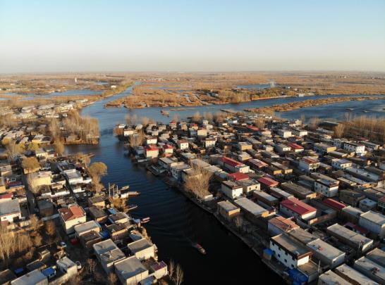 這是2018年12月6日無人機(jī)拍攝的雄安新區(qū)白洋淀上的村莊。