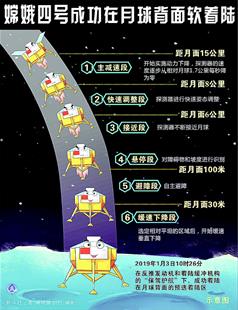 10時26分24秒,最激動人心的時刻終于到來:經歷了近700秒的落月過程,嫦娥四號探測器成功著陸,一切正常!指控大廳爆發出熱烈的掌聲。