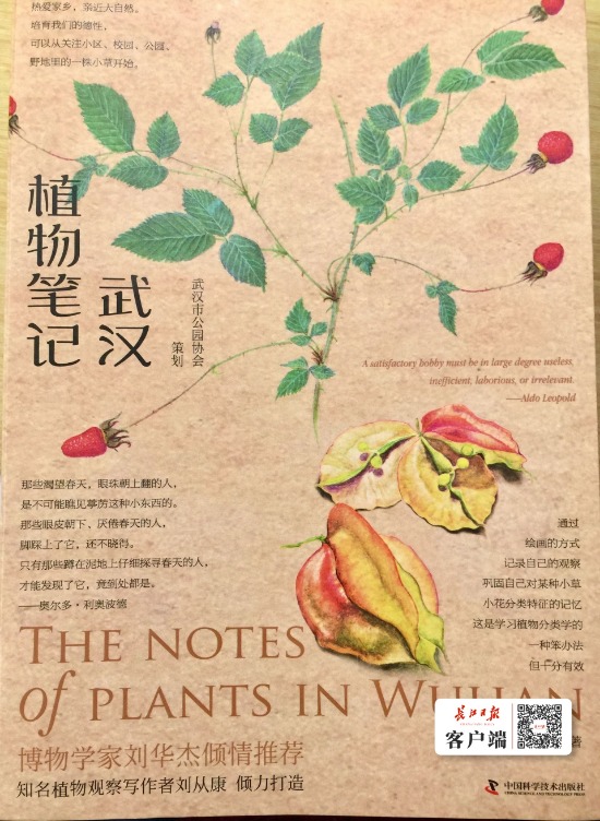 劉從康此前出版過科普讀物《身邊的鳥》,《武漢植物筆記》同樣從科普角度,以觀察筆記的形式,循著節氣物候的線索,介紹了武漢城市環境中的80余種鄉土植物,并配以作者的親筆手繪圖。書中入選的植物,皆為武漢常見物種,或生長于城市綠化帶、街心小花園,或常見于人行道、居民小區等,體現了武漢獨特的自然環境。