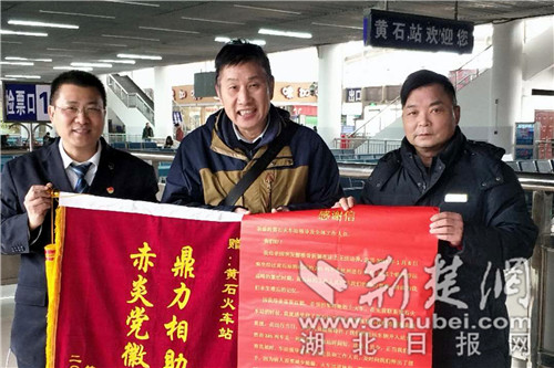 1月16日,旅客何躍先給黃石站送來感謝信和錦旗。劉劍輝 攝
