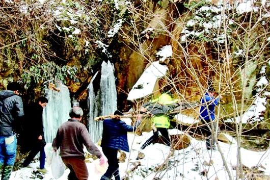 了解情況后,值班民警立刻聯(lián)系鄰近的旱田村委會,組織熟悉山路且身強(qiáng)力壯的村民進(jìn)山搜救。茫茫雪海、寒風(fēng)刺骨,地勢險要,山路崎嶇,林中溝壑縱橫,怪石嶙峋,加之厚厚的積雪,大家行走得異常艱難,幾乎每走幾步就要陷入積雪中,有時還得采取爬行、翻滾的辦法來提高前進(jìn)速度。但一路上大家相互提醒,心中都只有一個念頭:一定要盡快找到被困人員。