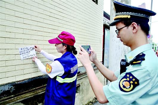 圖為:門前三包督導(dǎo)員使用智能終端對違法小廣告進(jìn)行取證