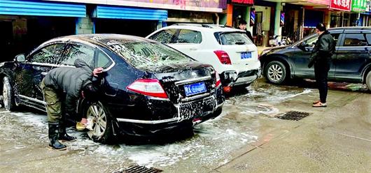 21日下午2時許,記者來到徐東才茂街周邊探訪。有兩家洗車店因為離得近,等候洗車的隊伍將路邊停得滿滿當當。車主張先生稱,他趁午休的時間出來洗車,等了一個多小時,前面還有兩臺車沒洗。“提前洗車好過年,最主要的是怕后面要洗車的人更多,價格也更貴。”