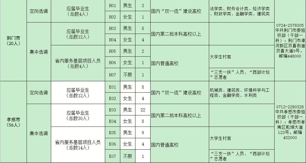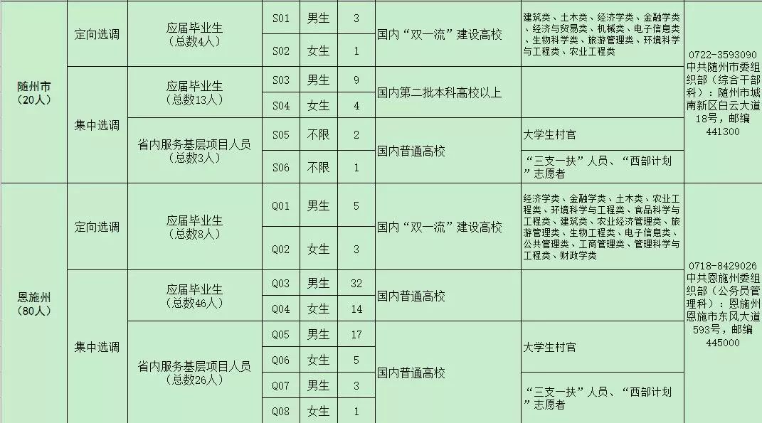 其中,面向國內“雙一流”建設高校應屆畢業生定向選調126名;面向國內普通高校應屆畢業生、省內服務基層項目人員等集中選調674名。