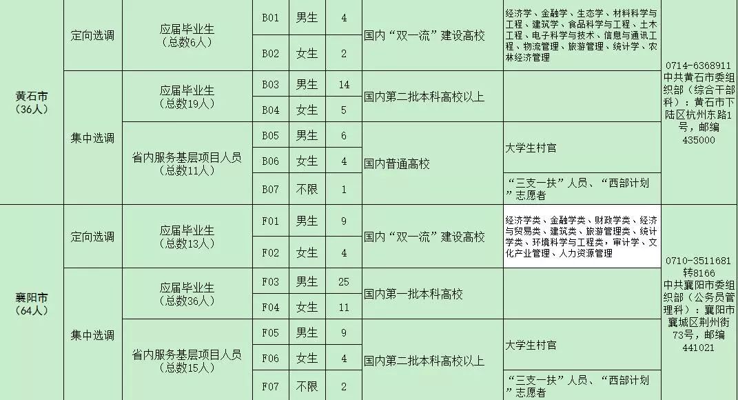 附:2019年湖北省選調生職位計劃表(前往湖北人事考試網可下載相關表格)