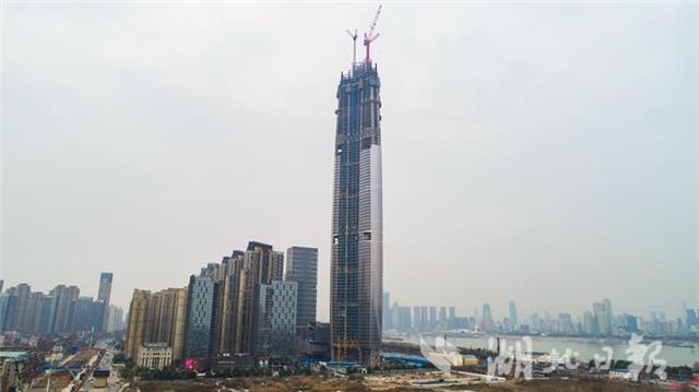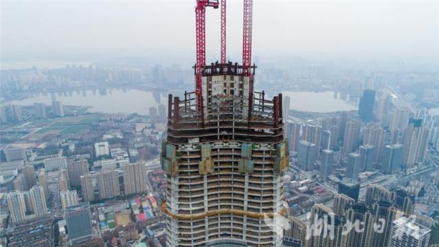 武漢綠地中心主塔樓1月28日封頂。(湖北日報全媒記者 陳勇 攝)