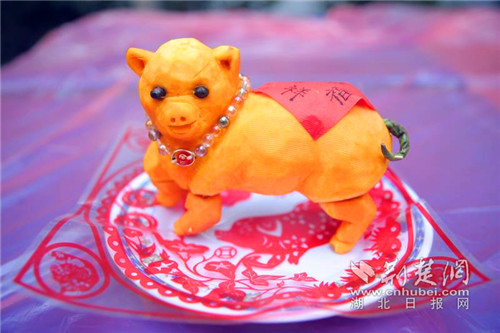 2019年恰逢新中國(guó)成立七十周年。社區(qū)萬(wàn)家宴上,廣大居民們用佳肴文化展現(xiàn)建國(guó)以來(lái)的幸福生活,歌頌祖國(guó)的繁榮昌盛。百步亭二居居民張木蘭面粉、糯米粉,顏料捏出活靈活現(xiàn),色彩鮮明的中國(guó)龍,象征華夏兒女同心向前;捏出萌態(tài)可掬的兩位中國(guó)福娃,手持"祖國(guó)""萬(wàn)歲"字樣,"1949-2019""70"數(shù)字上下排列,表達(dá)祖國(guó)日益強(qiáng)盛,居民心中滿滿的自豪感。