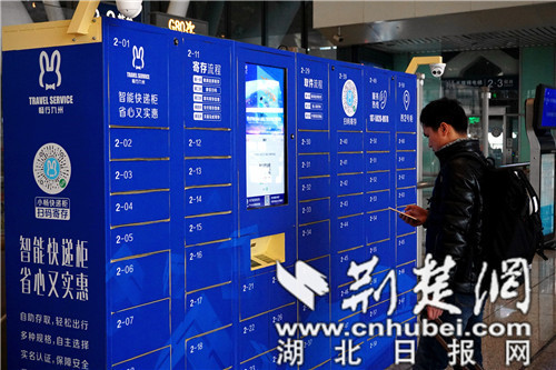 旅客在武漢火車站通過手機掃碼使用智能儲物柜寄存行李物品。鐘明 攝