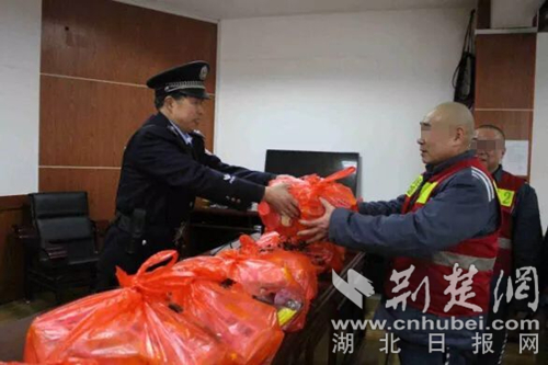 老丁為服刑人員發(fā)放新年物資。省沙洋范家臺監(jiān)獄供圖