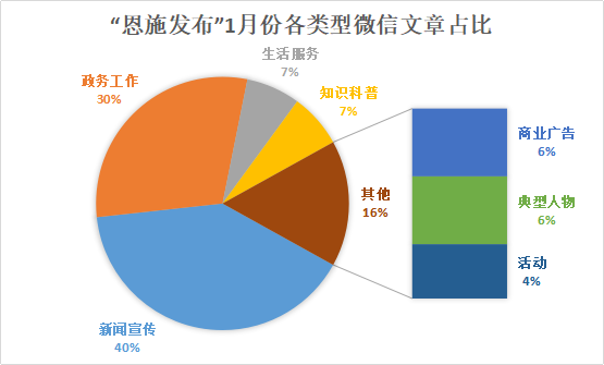 “恩施發布”1月份各類型微信文章占比圖。(郭金富 制)