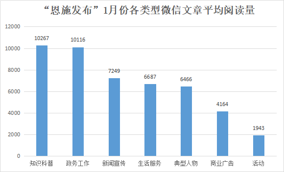 “恩施發布”1月份各類型微信文章平均閱讀量圖。(郭金富 制)