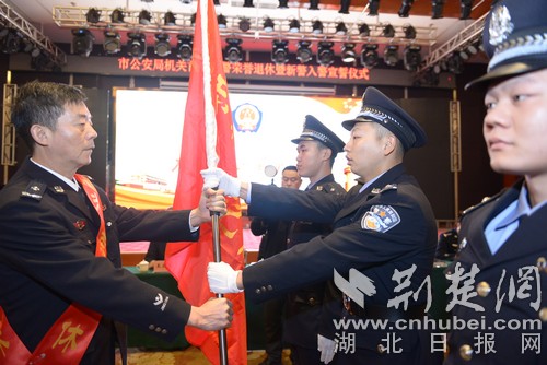 退休民警與新警進行了隊旗交接儀式。(通訊員 張恒 攝)