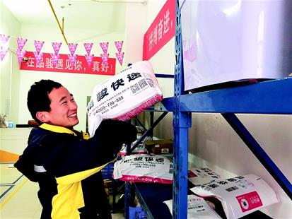 圖為:劉濤在公司網點整理快遞。