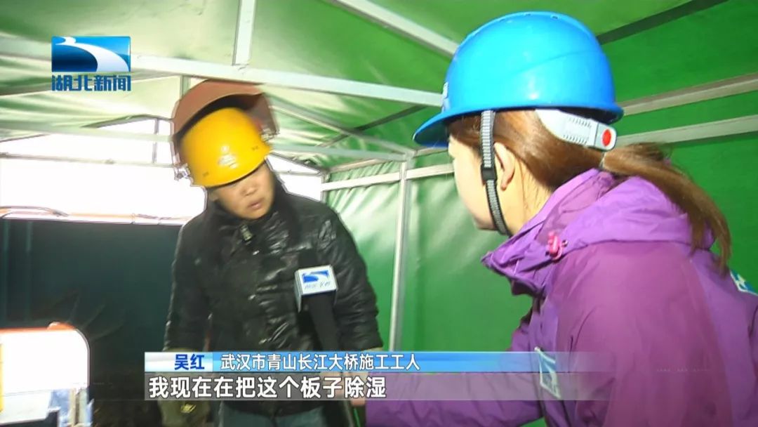 武漢市青山長江大橋施工工人 吳紅: 我現在在把這個板子除濕,如果有水的話,這就會影響焊接質量。