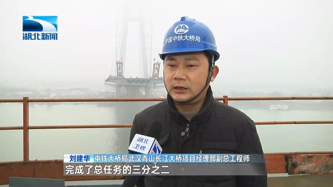 中鐵大橋局武漢青山長江大橋項目經理部副總工程師 劉建華: 目前鋼梁架設這一塊完成了總任務的三分之二,預計在2019年4月底橋面合攏。