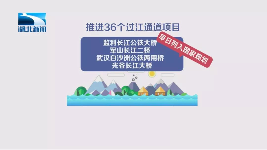 湖北省發改委還在推進36個過江通道項目,力爭監利長江公鐵大橋、軍山長江二橋、武漢白沙洲公鐵兩用橋、光谷長江大橋等項目早日列入國家規劃。