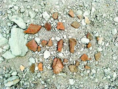 圖為朱金忠發(fā)現(xiàn)的古陶片