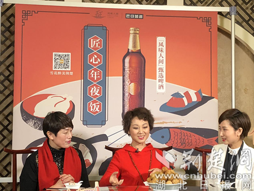 日前,荊楚網攜手雪花啤酒共同打造的“匠心年夜飯”活動來到位于武漢漢陽區芳草二街的騰飛酒樓,與著名主持人楊柳、楚劇表演藝術家國家一級演員彭青蓮一同品嘗有著二十多年歷史的“升官渡騰飛圓子”。