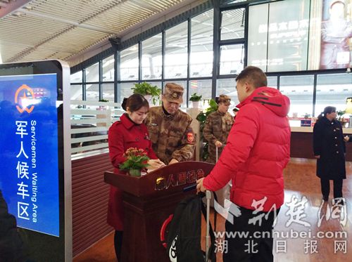 武漢火車站相關(guān)負(fù)責(zé)人介紹,保障好各級領(lǐng)導(dǎo)和工作組優(yōu)先出行,難以體現(xiàn)服務(wù)水平,只有讓每名普通官兵都能憑證件優(yōu)先快捷出行,才算把"軍人依法優(yōu)先"政策落到實(shí)處。為此,自2017年8月1日起,全國鐵路系統(tǒng)全面開展軍人出行依法優(yōu)先工作以來,他們一直積極深化落實(shí)軍人出行"十優(yōu)先"措施,凡持證進(jìn)站軍人均可享受優(yōu)先購票、車票退改簽、無票進(jìn)站上車補(bǔ)、站內(nèi)購物優(yōu)惠、行李托運(yùn)等10種優(yōu)先優(yōu)惠服務(wù)。在候車室內(nèi)設(shè)置獨(dú)立的軍人候車專區(qū)(室),提供茶水、零食小吃、電視、報(bào)刊、手機(jī)充電等服務(wù),讓過往軍人享受有貴賓式服務(wù)和優(yōu)先。