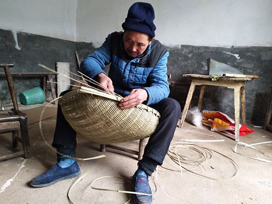 崇陽縣桂花泉鎮(zhèn)農(nóng)戶余良貴編簸箕(馬麗婭攝)