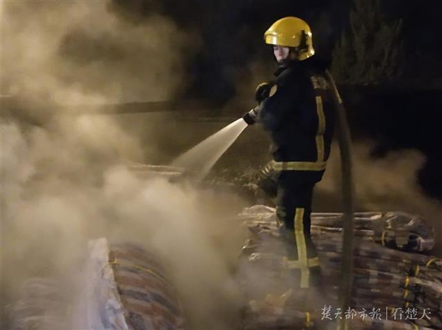 楚天都市報2月27日訊(記者葉文波 通訊員武消宣 實習生焦孟雷 別明蔚)2月27日凌晨,在武漢市三環線一輛滿載貨物的掛車自燃,楊汊湖消防中隊快速出動,在控制火勢之后,全體消防員徒手清理積壓貨物,防止復燃,奮力搶救減少損失……徹夜奮戰4小時,消防員們滿身污漬、疲憊不堪。車主的一句感謝,他們覺得再苦再累都值得。