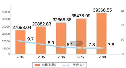 2018年,全省完成生產(chǎn)總值39366.55億元,增長7.8%。其中,第一產(chǎn)業(yè)完成增加值3547.51億元,增長2.9%;第二產(chǎn)業(yè)完成增加值17088.95億元,增長6.8%;第三產(chǎn)業(yè)完成增加值18730.09億元,增長9.9%。三次產(chǎn)業(yè)結(jié)構(gòu)由2017年的10.0∶43.5∶46.5調(diào)整為9.0∶43.4∶47.6。在第三產(chǎn)業(yè)中,交通運輸倉儲和郵政業(yè)、批發(fā)和零售業(yè)、住宿和餐飲業(yè)、金融業(yè)、房地產(chǎn)業(yè)、其他服務(wù)業(yè)增加值分別增長5.1%、6.5%、6.1%、5.0%、6.3%、15.4%。(見圖1)