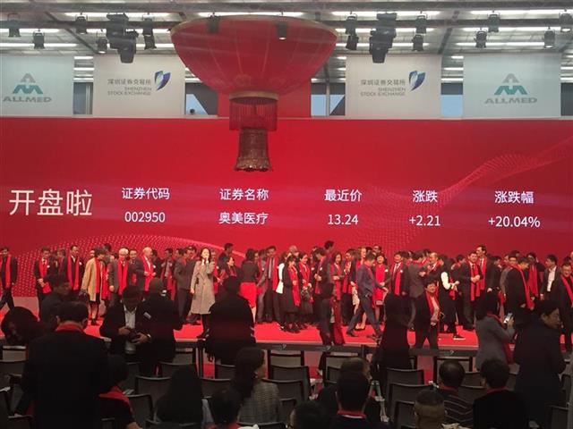 3月11日上午9時25分,深交所內鐘聲響起,宣告奧美醫療用品股份有限公司正式上市。